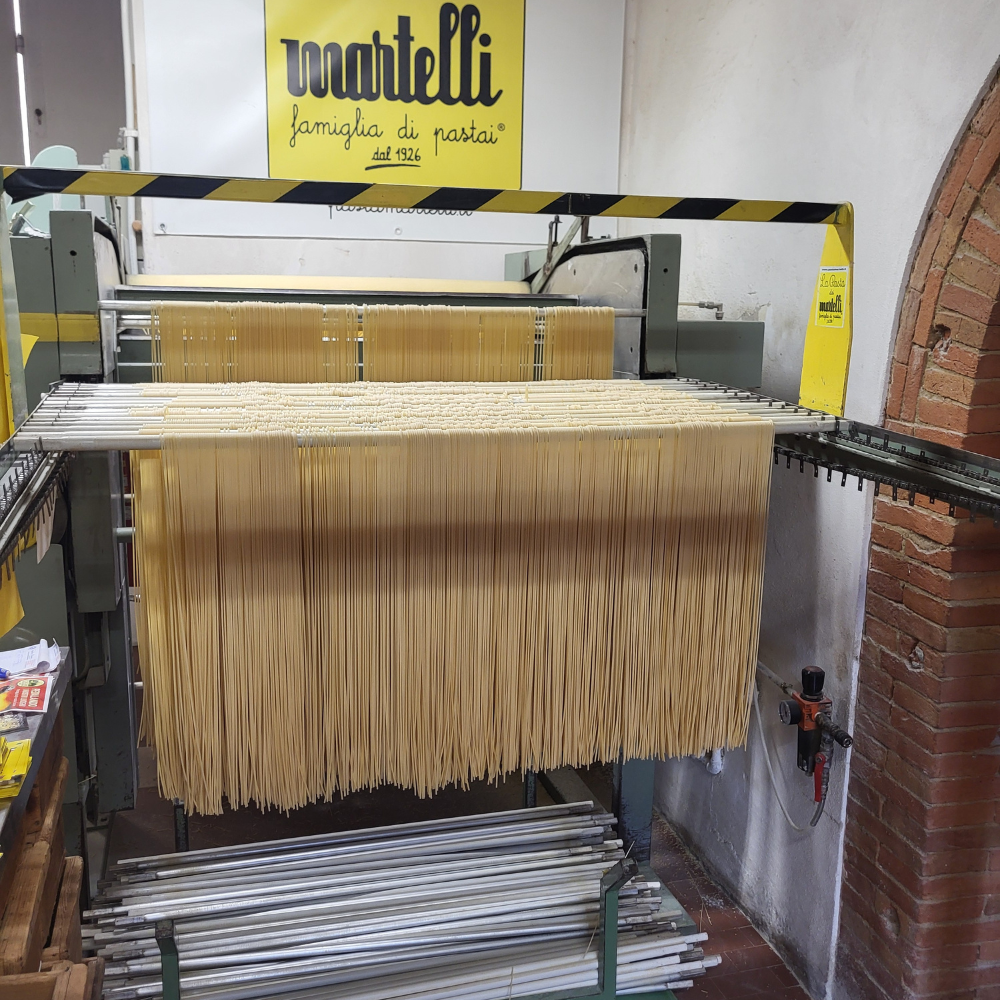 Spaghetti dei Martelli, familie van pastamakers vanaf 1926. Geproduceerd door de familie Martelli, in hun eigen fabriek te Lari, in het centrum van de heuvels van Pisa in Toscane. Pasta van Martelli moet je gewoon een keer geprobeerd hebben.