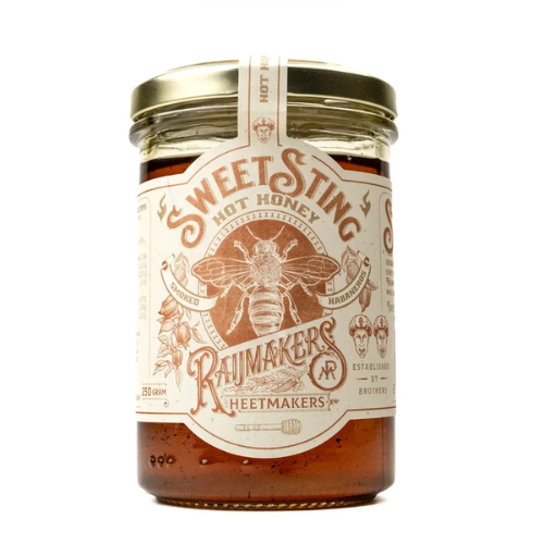 Ontdek de unieke smaak van Smoked Habanero Hot Honey van Raijmakers Heetmakers. Deze pittige honing combineert de natuurlijke zoetheid van echte honing met de rokerige kick van gerookte habanero pepers. Perfect als smaakmaker bij kaasplankjes, pizza, kip, of zelfs in cocktails. Gemaakt in Nederland met eerlijke ingrediënten en een flinke dosis lef.